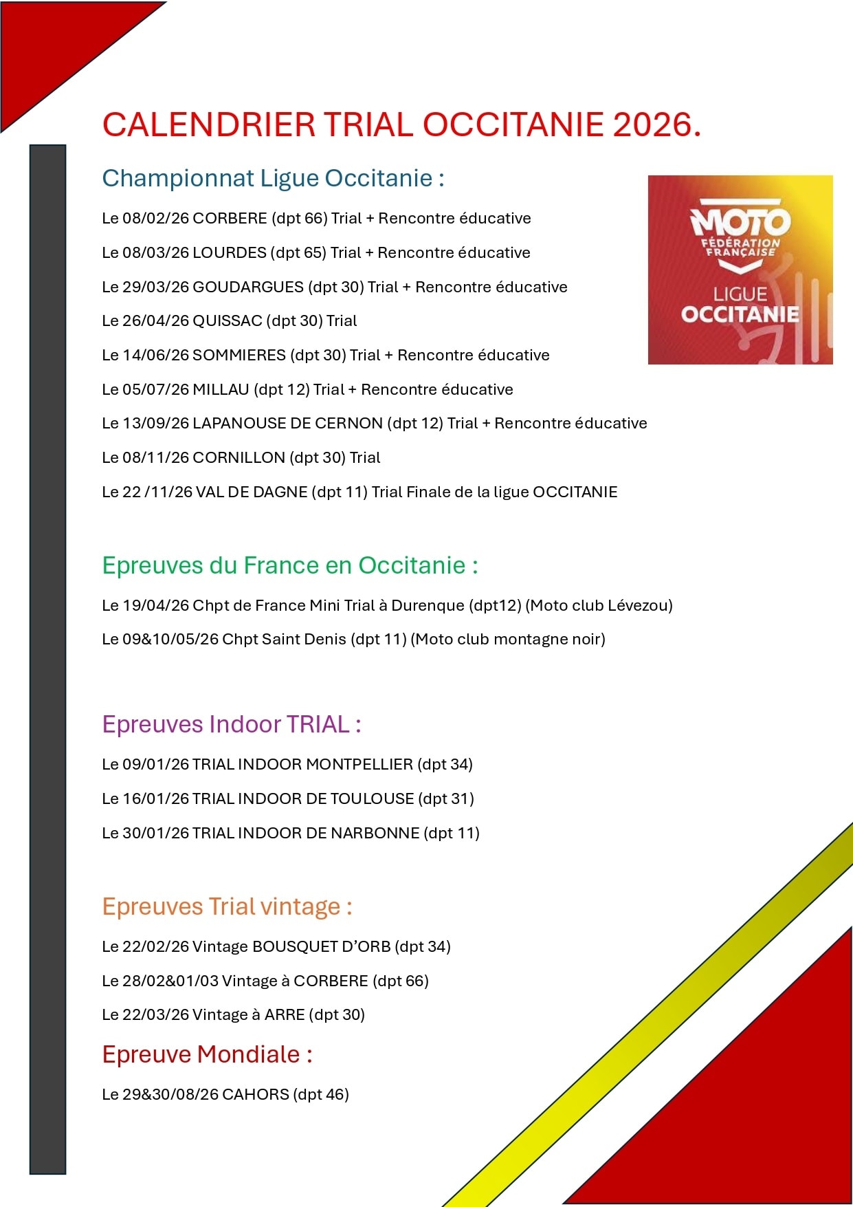 Les compétitions FFM France 2025 ICI Les compétitions FFM Occitanie 2025 ICI Le calendrier FFM Occitanie 2026 ICI Le challenge MUSTH 2024-2025(Moto Ufolep Sud Trial Historique)
